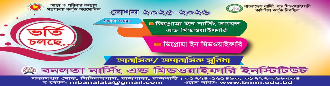 একদল দক্ষ ও আদর্শ নার্স তৈরীর মহান উদ্দেশ্যকে সামনে রেখে শিক্ষা নগরী রাজশাহীর প্রান কেন্দ্রে প্রতিষ্ঠিত হয়েছে বনলতা নার্সিং এন্ড মিডওয়াইফারি ইন্সটিটিউট যা গণপ্রজাতন্ত্রী বাংলাদেশ সরকার এর স্বাস্থ্য ও পরিবার কল্যান মন্ত্রনালয় কর্তৃক অনুমোদিত এবং বাংলাদেশ নার্সিং এন্ড মিডওয়াইফারী কাউন্সিল কর্তৃক নিবন্ধিত। এখানে অধ্যায়নরত ছাত্র-ছাত্রীরা রাজশাহী মেডিকেল কলেজ হাসপাতালে হাতে কলমে প্রশিক্ষনের সুবিধা পাবে। বর্তমানে নার্সদের সরকারী ভাবে ২য় শ্রেণীর পদমর্যাদা দেওয়া হয়েছে। প্রাতিষ্ঠানিক শিক্ষা শেষে কাঙ্খিত যোগ্যতানুসারে একটি চাকুরী প্রাপ্তি আমাদের দেশের সর্বোচ্চ ডিগ্রীধারী লক্ষ লক্ষ শিক্ষিত বেকারদের কাছে আজ সোনার হরিণ। প্রতিযোগিতা মূলক চাকুরীর বাজারে নার্সিং পেশার রয়েছে অবারিত সুযোগ দেশে ও বিদেশে রয়েছে চাকুরীর অপার সম্ভাবনা বিস্তারিত